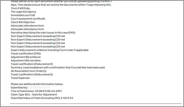 A document/evidence request will be sent to the person who submitted the bill. This must be processed before the LAA can process the request.