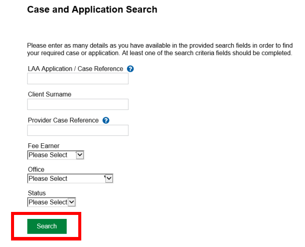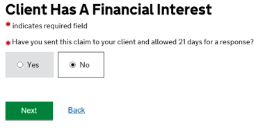 NOTE: You must contact LAA for permission upfront to submit a Solicitor Interim claim. Without this permission, CCMS will not allow you to proceed beyond this screen.