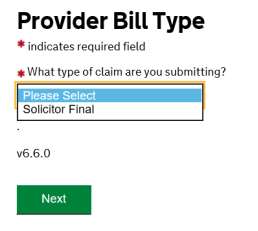 Once the Outcomes are complete, ‘Solicitor Final’ will be the only option. If you want to submit a Solicitor Interim, you should contact LAA through a Billing Enquiry to request permission.
