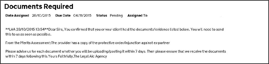 This helps our caseworkers identify the documents when they are processed. It also helps you identify the file size of individual documents. If the total file size of your documents exceeds 8MB you should contact the LAA and ask for an additional Documents Required action.