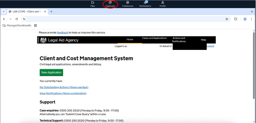 - Select the ‘Clipboard’ in the Secure Browser menu