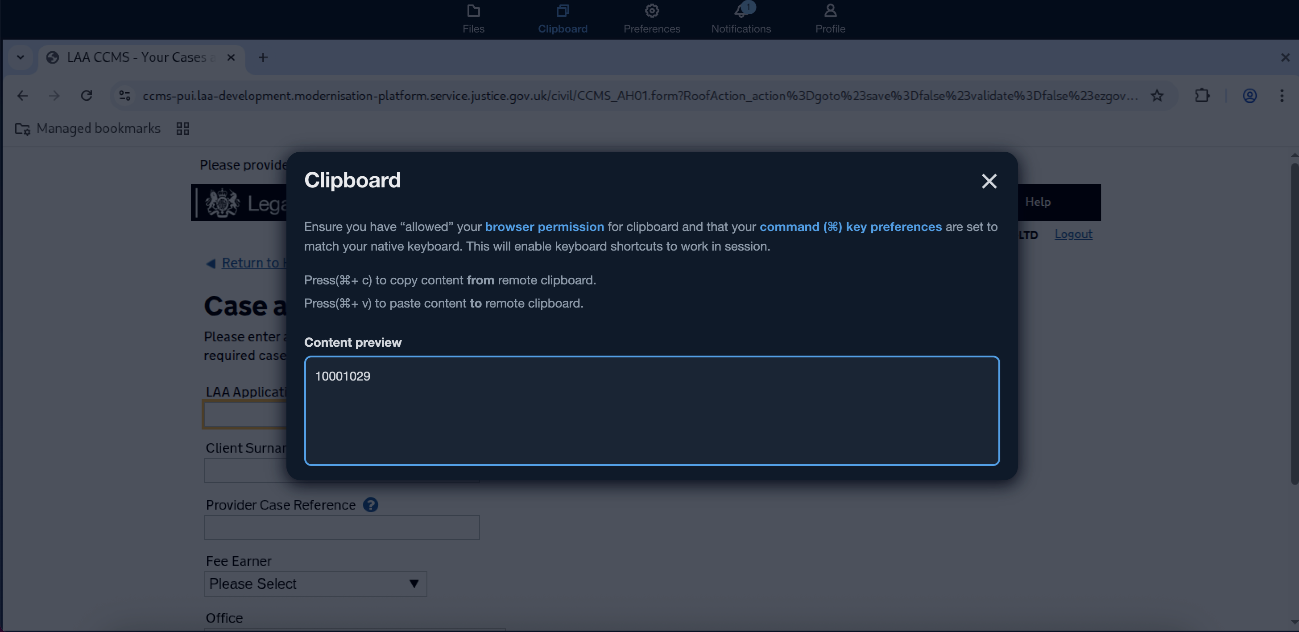 When you use the Secure Browser for the first time, you should see a pop up requesting you to allow permission to enable features like copying and pasting and file upload. If you’ve clicked ‘Allow’ on this, you should be able to copy and paste from your computer to the Secure Browser as you usually would.